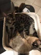 We have two young Bengal cats, a boy and a girl from the same litter. The two are now 9 months old.